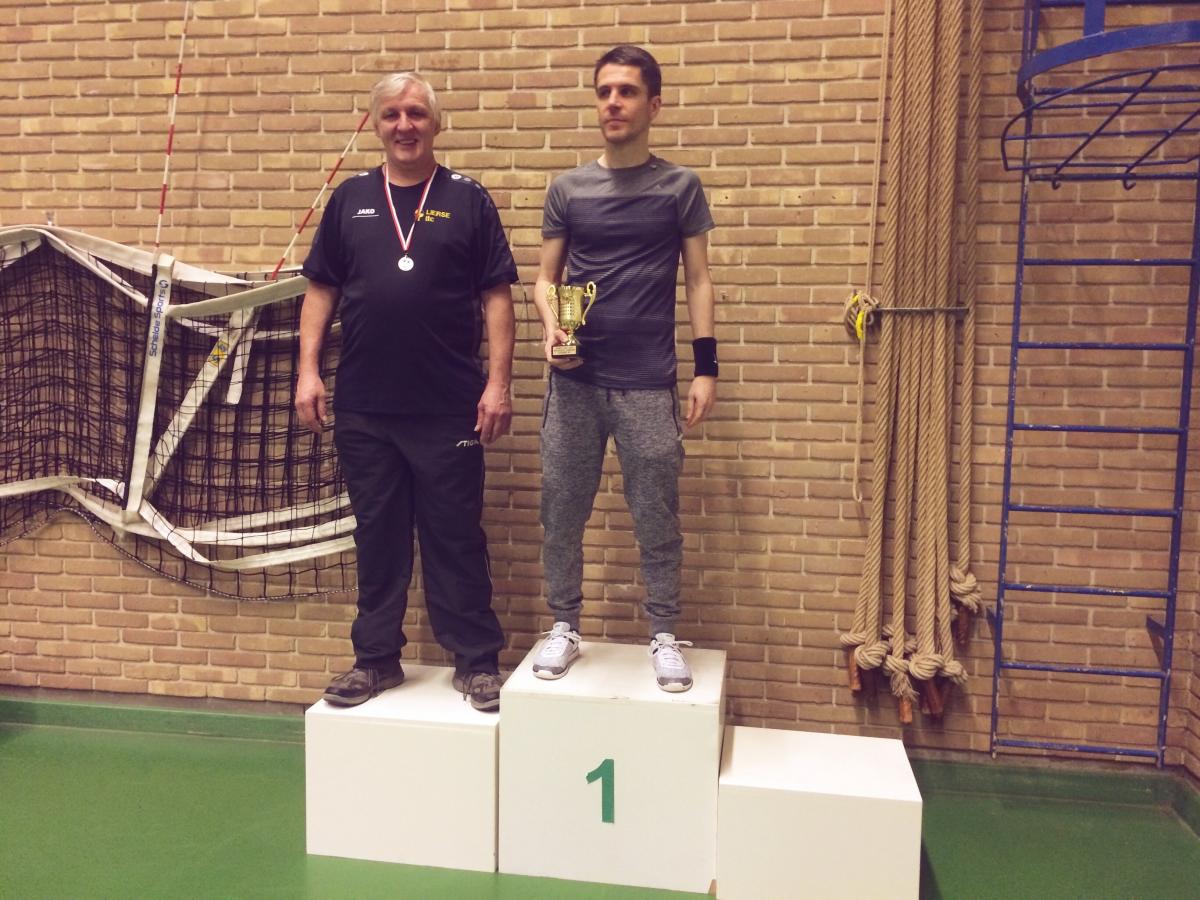 Kris (E0), ingeschreven in de E-reeks, had een prima dag en ging vlot door de poules. Hij won overtuigend alle wedstrijden in zijn groep. Drie keer winst met slechts twee verloren sets. Kris mocht meteen door naar de halve finale waarin hij de betere was van Pipoka-speler Hans Van Bael (E0). Kris won met 3-1.
