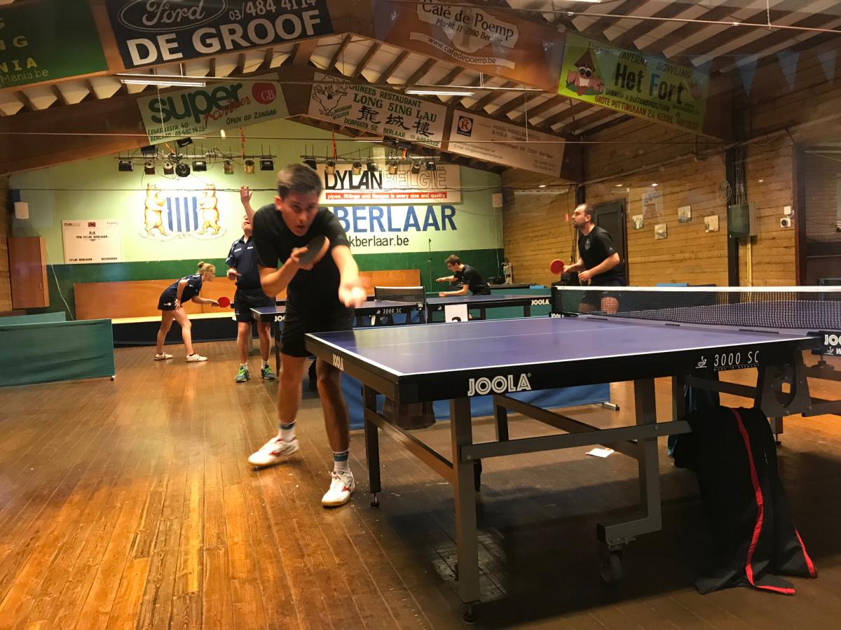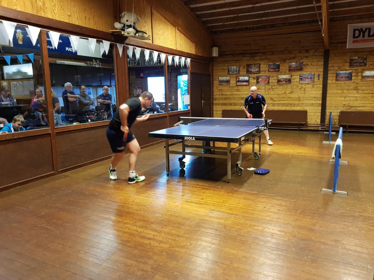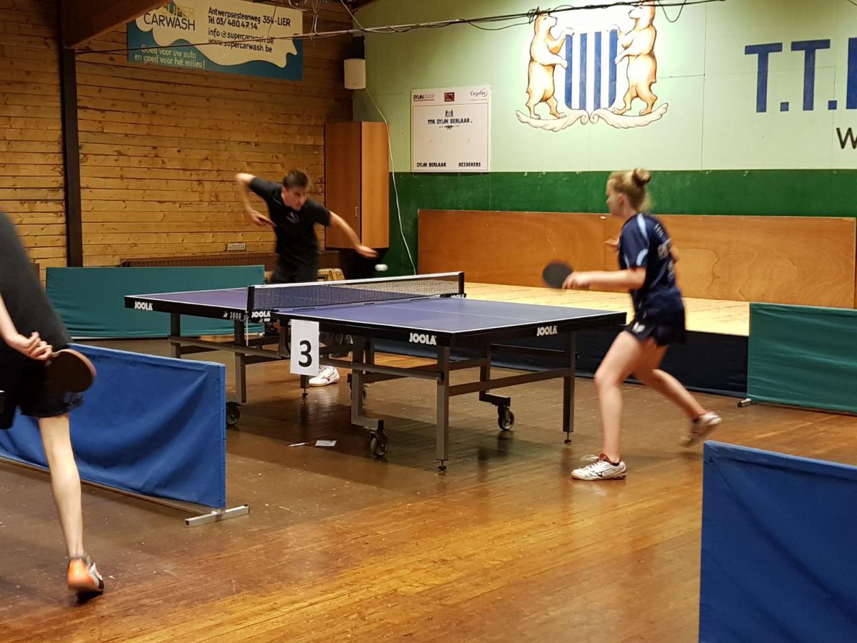 De spelers werden in twee groepen verdeeld en elke speler moest twee wedstrijden spelen. Berlaar had geprobeerd om ongeveer een gelijkwaardig team op te stellen en dat was Werner blijkbaar heel goed gelukt. Na twaalf duels stond het immers 6-6 gelijk. In de hogere groep werd het 2-4, in de lagere groep 4-2. Om een winnaar te kunnen aanduiden, moesten sets geteld worden. Die telling draaide uit in het voordeel van Berlaar: 25-22.