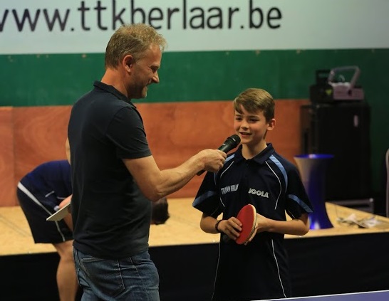 Toen presentator Luc Enghien daarna voorzichtig polste of hij ook een balletje wilde kloppen tegen iemand van onze A-ploeg, volgde een moedig 'ja'. En dat ging niet eens zo slecht ;-).