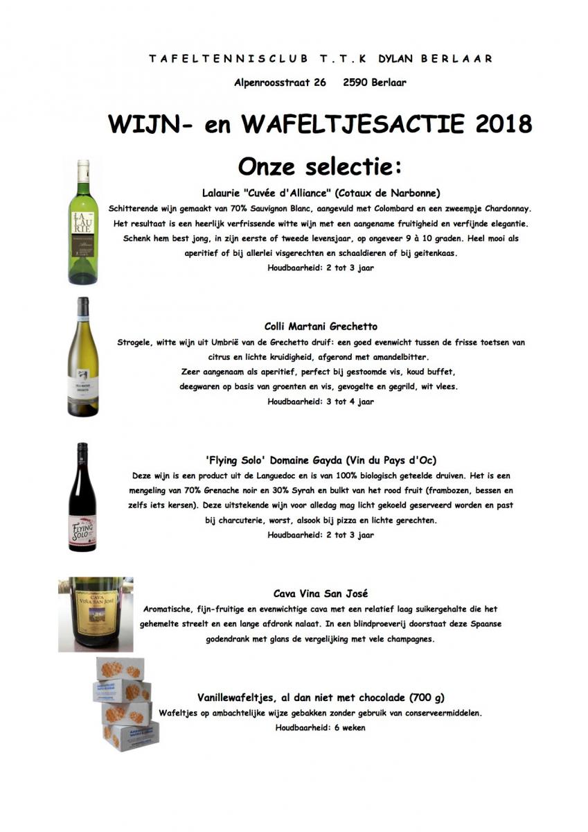 Onze spelers verkopen in de herfst weer wijnen ten voordele van de club. De selectie is weer gebeurd door onze voorzitter/wijnkenner Werner Van den Broeck, dus smaken zullen ze zeker. Er zitten ook wafeltjes in het aanbod. Briefjes om te verkopen zijn te vinden in het clublokaal. Dank voor uw inzet en steun!