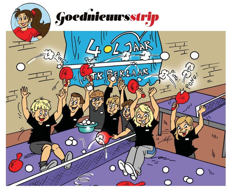 Bij de Gazet van Antwerpen laten ze een striptekenares geregeld een leuke ingezonden foto 'verstrippen' voor de Goednieuwsstrip. Onlangs was het de beurt aan onze toffe groep kleuterpingpongertjes van woensdagnamiddag. Zij gingen samen op de foto en die werd ingezonden naar de krant. Het resultaat ziet u hieronder. Bekijk hier de volledige foto en de strip.
