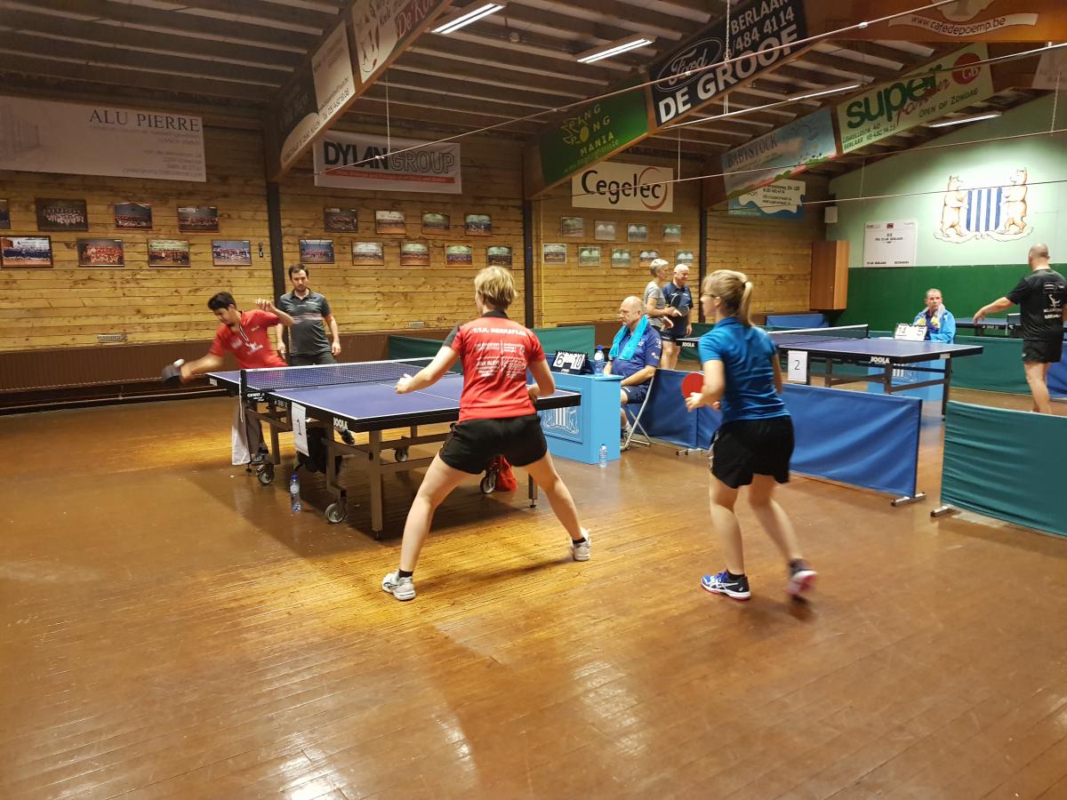 Het maximum inschrijvingen van 24 dubbels was al in september bereikt. Het dubbeltornooi wordt met voorgift gespeeld, met twee gewonnen sets tot 21 punten. Er moest jammer genoeg een dubbel de dag voordien afhaken door ziekte, maar dat mocht de pret niet bederven. Het deelnemersveld kwam uit 15 verschillende clubs (2 deelnemers hadden geen club), maar allemaal hadden ze twee dingen gemeen. Deze duo’s gingen voor de eeuwige roem en natuurlijk ook voor de sfeer en gezelligheid! Deze twee waarden droeg onze vorige voorzitter en goede vriend Karel Sappenberghs hoog in het vaandel.