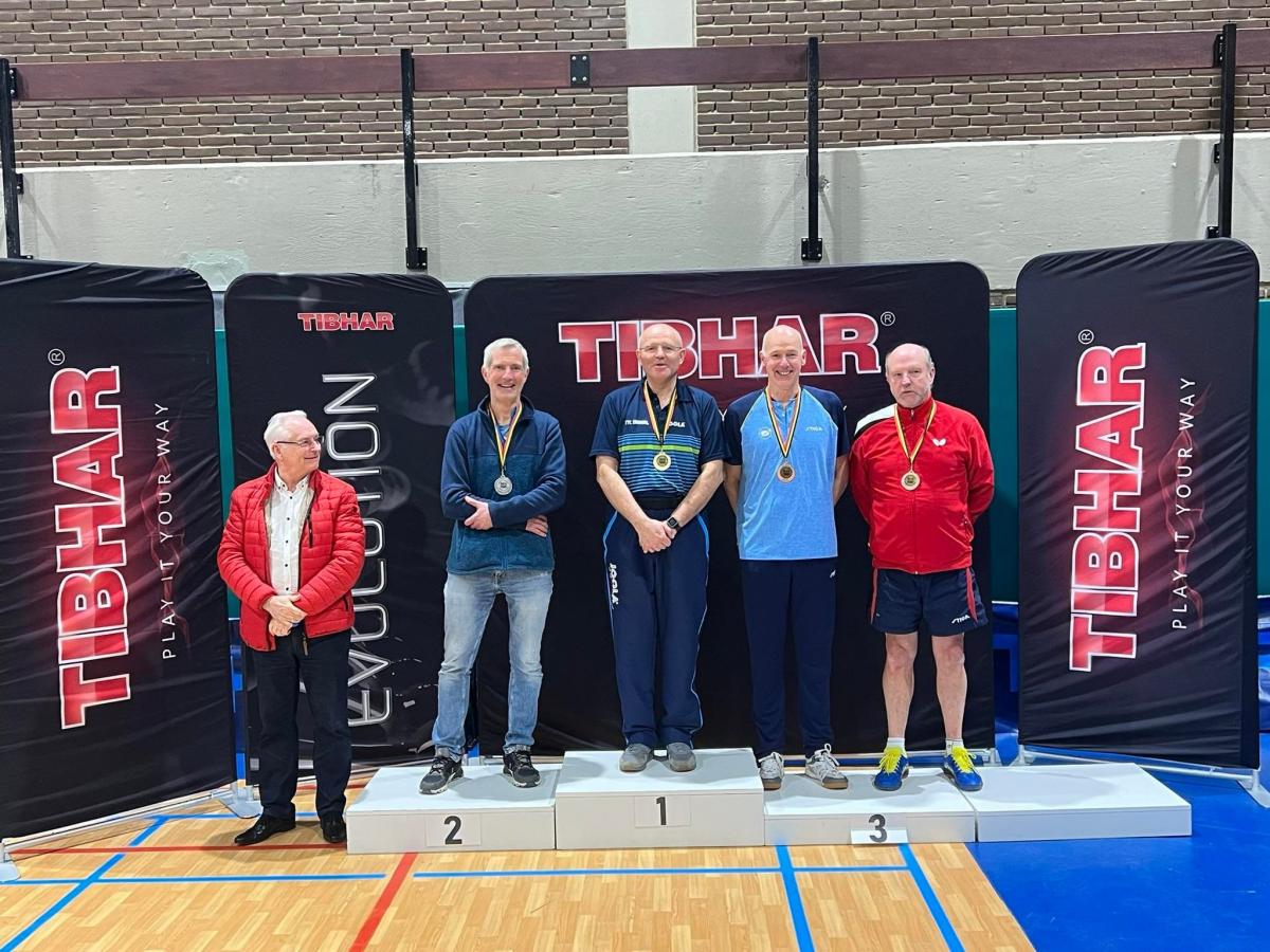 Jan Van Ginkel, voor onze club actief in het Sporta-verbond, kon dan weer verrassend de titel behalen in de reeks +60. Hij klopte favoriet Vansteenkiste (B4) in de halve finale en klopte ook Regnier (B6) in de beslissende match voor goud.