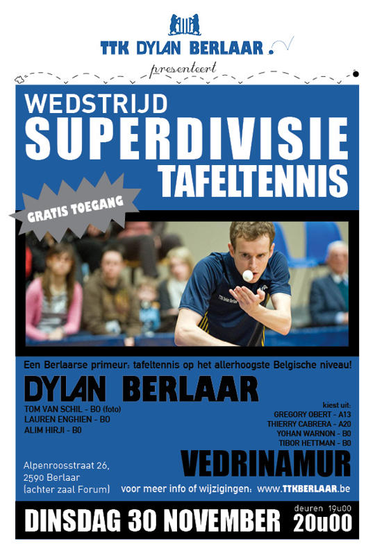 Volgende thuiswedstrijd: 30/11 tegen Vedrinamur