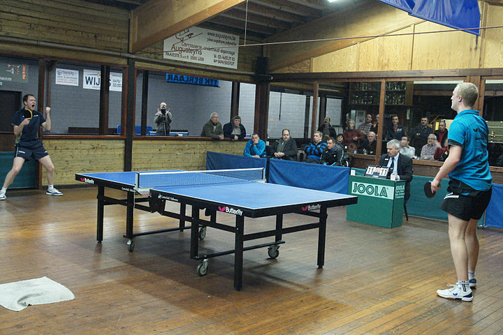 Guyot benutte ook hier het eerste matchpunt niet. In de zaal bereikte de sfeer een kookpunt: 10-10. De volgende twee matchpunten waren voor onze Florent. Maar telkens vocht Guyot sterk terug. Wanneer Flo de wedstrijd in zijn voordeel leek te beslechten, had Guyot een even sterk antwoord klaar. 13-15 was het uiteindelijk verdict om 23.10u. Wie er zo dichtbij is, hoopt op meer. Maar een fantastische pingpongavond was het alleszins.