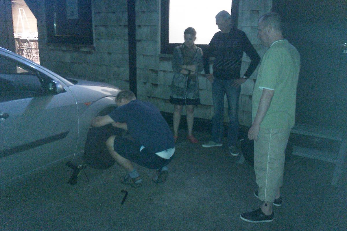 Zoals elk jaar vervoerde Werner de lege flessen wijn van Ping Pong Kermis naar de glascontainer. Maar dit jaar liep het mis. Hij ontdekte een platte band. "Mijn eerste in 27 jaar", klonk het. Gelukkig waren er enkele leden in het lokaal aanwezig om hem bij te staan bij het vervangen van de band.
