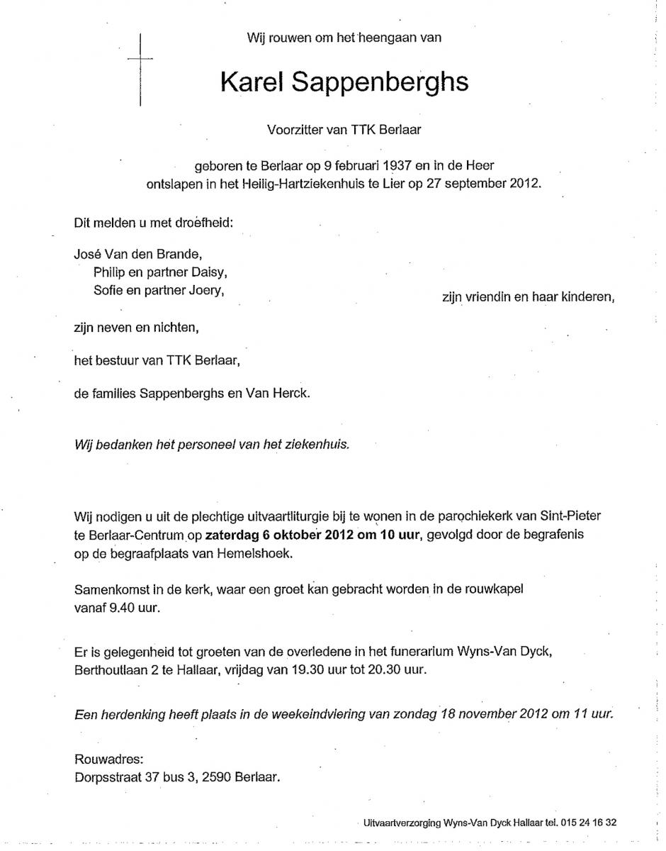 Karel Sappenberghs (1937-2012)