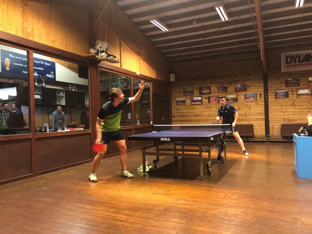 Zo werd het 11-5 en blijft Dylan Berlaar op een gedeelde tweede plaats staan in de rangschikking van Eerste Nationale. De aanwezige toeschouwers genoten in elk geval van de knappe teamprestatie en de talloze g-e-w-e-l-d-i-g-e punten die op de eerste twee tafels te zien waren. We hebben dit seizoen echt een straffe eerste ploeg. Wie nog niet is komen zien, moet dat zeker één van de komende weken eens doen...