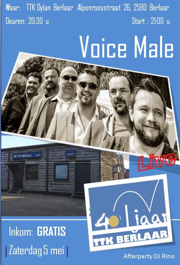 Op zaterdag 5 mei vieren wij ons veertigjarig bestaan! We beginnen met een officiële viering (enkel voor genodigden) van 16u-20.30u. Vanaf 20.30u (vrije toegang voor iedereen) is er een uniek optreden van Voice Male. De heren starten met hun optreden vanaf 21u. Niet te missen! Meer praktische info en een filmpje van Voice Male hieronder. Lees meer