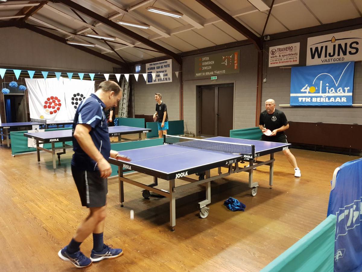 De spelers werden in twee groepen verdeeld en elke speler moest twee wedstrijden spelen. Berlaar had geprobeerd om ongeveer een gelijkwaardig team op te stellen en dat was Werner blijkbaar heel goed gelukt. Na twaalf duels stond het immers 6-6 gelijk. In de hogere groep werd het 2-4, in de lagere groep 4-2. Om een winnaar te kunnen aanduiden, moesten sets geteld worden. Die telling draaide uit in het voordeel van Berlaar: 25-22.