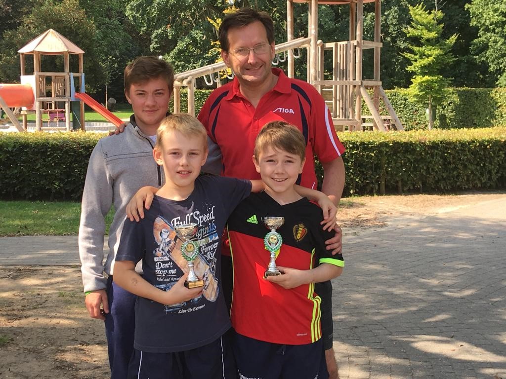 Matthias stond met maar liefst 21 spelers ingeschreven bij de U14. Ze werden opgedeeld in drie poules van zeven spelers. Matthias won alle matchen in z’n poule en moest hierdoor geen kwartfinale spelen. In de halve finale kwam hij een bekend gezicht en frequent deelnemer aan onze zomerbeker tegen: Max Thys uit Heikant. De match eindigde in een spannende vijfsetter in het voordeel van onze Matthias! Jammer wel voor die sympathieke Max. Zo ging Matthias met vertrouwen de finale in en won deze dan ook met verve: 3-0 tegen Lenn De Kinder van Zwijndrecht. Matthias werd gecoacht door Karl Wijnen en heeft zijn raad goed opgevolgd en steeds het hoofd koel gehouden.