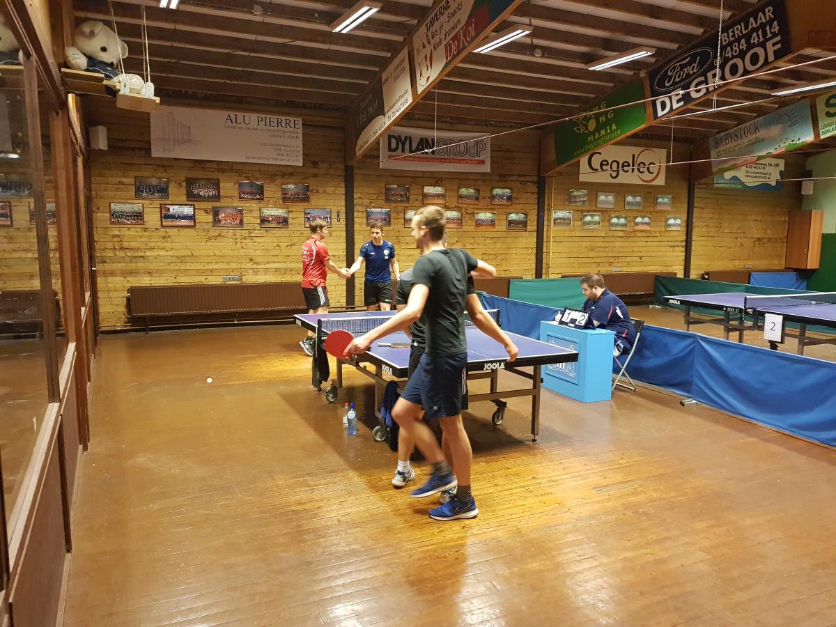 In poule C staken twee dubbels er bovenuit. Vincent en Robbe wonnen al hun zeven wedstrijden, en moesten maar één setje prijsgeven tegen Dave en Bodhi. Ook Theo en Kathleen waren goed op weg om een goede uitslag bijeen te spelen, ze hadden niet verwacht dat het zo laat ging worden en moesten de dag nadien competitie spelen en zijn dus vroeger vertrokken. Onderaan amuseerden Wilfried en Marleen zich en konden hier en daar bijna een setje afsnoepen van de tegenstanders. Door het vertrek van Theo en Marleen lag deze poule open. Davy en Ramil wonnen vier wedstrijden en werden hierdoor tweede. Er waren maar liefst vier dubbels met drie gewonnen wedstrijden, die plaats drie tem 6 moesten verdelen. Ticho en Joël kwamen er als beste uit, samen met Robin en Dirk gingen ze naar de winnaarstabel. Wendy en Dirk eindigden als vijfde. Dave en Bodhi wonnen tegen de verkeerde dubbels en eindigden als zesde.