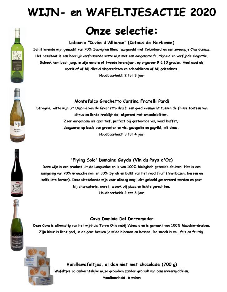 Onze traditionele wijn- en wafeltjesactie is weer van start gegaan. Onze clubleden verkopen (en kopen) weer lekkere flessen wijn, die door de wijnkenners uit onze club geselecteerd zijn. Er zijn ook weer heerlijke wafeltjes te koop. De opbrengst gaat naar de clubwerking. Bekijk onze selectie hier.
