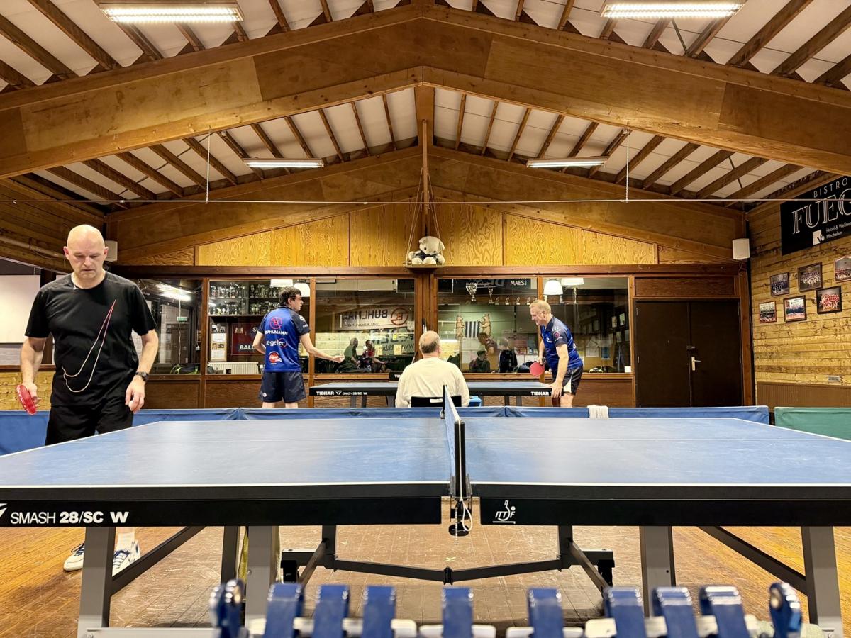Dominique won zijn poule, gevolgd door Annelies Peere. In de andere poule was Johan Wonnink de eerste, voor Bert Provoost. In de onderlinge match pakte die eerste uit met een verrassende en welgemikte opslag langs de lijn, waarna de kuit van Bert het begaf. Bert, die de laatste maanden sukkelde met een elleboogblessure, kon die eerste set nog afronden, maar moest daarna de strijd staken. De Man van Glas spoelde de ontgoocheling dan maar weg met een glas.