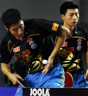Ma Long won het heren enkelspel door een 4-0 overwinning op zijn landgenoot Ma Lin. Samen met Wang Liqin, foto, was hij ook de sterkste in het dubbel. De Japanners Mizutani en Kishikawa werden met 4-3 verslagen. Het Japanse duo schakelde in de halve finale Ma Lin en Xu Xin uit.