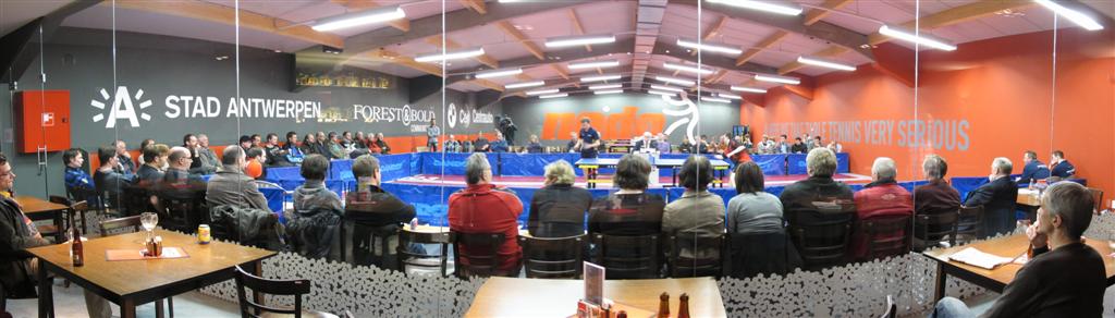 Na de stuntoverwinning in het dubbel was een overwinning plots niet meer zo onmogelijk als het een halfuur eerder leek. Met nog een quasi onhaalbare wedstrijd tegen Drinkhall te gaan, kon de ploeg zich wel geen enkel zwak moment tegen de twee andere spelers meer veroorloven. Eerst ging Tom Van Schil zoals verwacht voor de bijl tegen Paul Drinkhall. Ook Tom toonde zijn vorm en kon een setje meepikken.