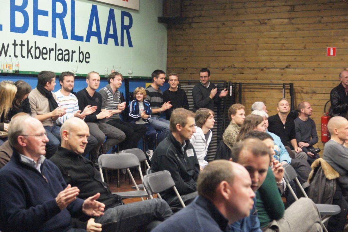 Al meer dan eens klonk dit seizoen uit de mond van de spelers dat ze beseften dat ze in dit unieke jaar op een geweldige supportersschare konden rekenen. Het geroep, het geklap, tot zelfs het ultieme gebonk met de hekjes (zie bijvoorbeeld op 0:55 via deze link): alle middelen waren goed om de ploeg te steunen. En met resultaat, want op de écht beslissende momenten op het einde van het seizoen leken onze spelers over een tweede palet te beschikken, die er voor zorgde dat het balletje net deed wat de spelers verlangden. Of dat volledig met de trouwe 'vierde man' te maken had, is niet helemaal zeker. Dat het behoud nog gevierd moet worden, des te meer!