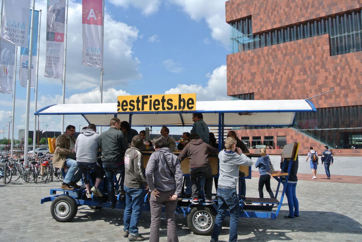 De culturele fietstocht door Antwerpen met de bierfiets was een voltreffer. De deelnemers lieten zich door onze gids door de mooiste plekjes van Antwerpen leiden. Dat leverde enkele mooie plaatjes op.