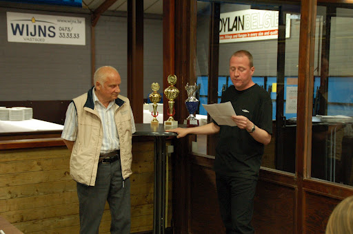 In 1980, na de het wegvallen van het eerste bestuur, was er een eerste scharniermoment waarop je de club hebt gered … in 1988 was er een tweede, mogelijk nog crucialer kantelmoment. De huisbaas wilde ons weg uit het schuurtje dat we omgebouwd hadden tot een lokaaltje met 3 speeltafels en omdat we over geen geldig huurcontract beschikten, hadden we geen poot om op te staan. Op 5 maanden tijd is er toen een klein mirakel tot stand gekomen en hebben we het eerste (houten) gedeelte van het lokaal opgericht zoals we dat nu nog kennen. Om dat te verwezenlijken was er visie, mankracht, doorzettingsvermogen en geld nodig. Visie, mankracht en doorzettingsvermogen waren ruimschoots aanwezig … geld niet. Vele leden hebben toen een kleine bijdrage geleverd, ieder naar best vermogen, maar zonder die twee grote financiële injecties van jou en van dat ander boegbeeld, ere-voorzitter Walter Luyten, was het ons nooit of nimmer gelukt. Vanaf dan was ook écht de infrastructuur aanwezig om uit te groeien tot één van de grootste clubs van het land … en de rest is geschiedenis.