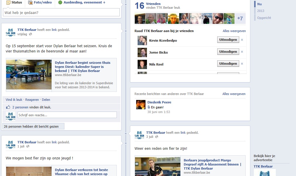 Dus durven we vragen om 'TTK Berlaar' eens op te snorren op Facebook en op de 'Vind ik Leuk'-knop te drukken. De berichten verschijnen dan automatisch in je nieuwsoverzicht op Facebook. Wie zelf iets wil posten, kan dat gewoon doen. Hou er wel rekening mee dat ook buitenstaanders de berichten kunnen lezen.