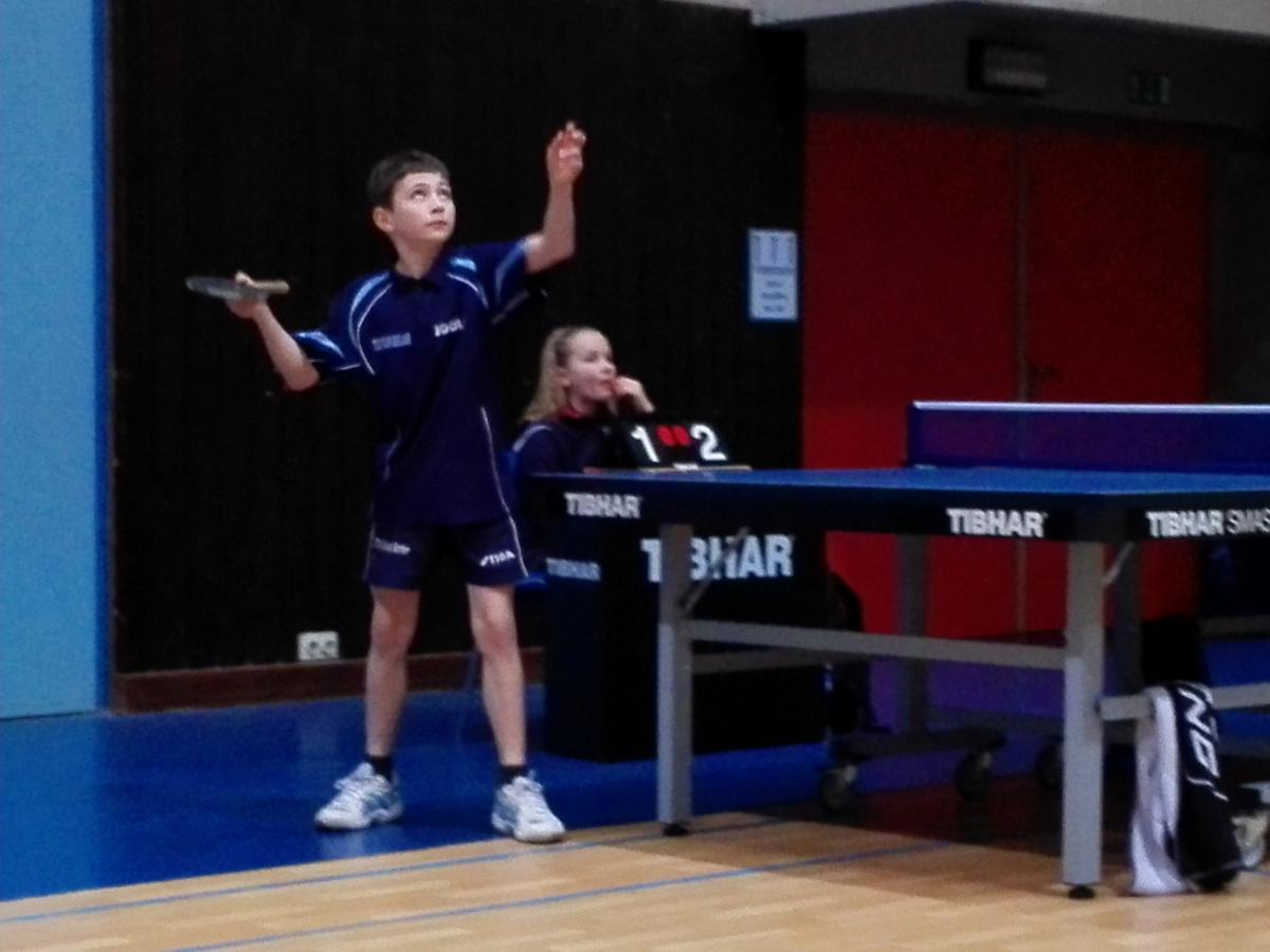 Ticho de Winter (E4) legde een gelijkaardig parcours af als Alessa in divisie 7 bij de jongens. Hij won twee wedstrijden: tegen een E2 en een E4. Hij moest slechts één keer met 3-0 de duimen leggen, in de overige wedstrijden kon hij telkens één set winnen. Ticho liet mooie dingen zien, nu dit nog een hele wedstrijd proberen vol te houden!